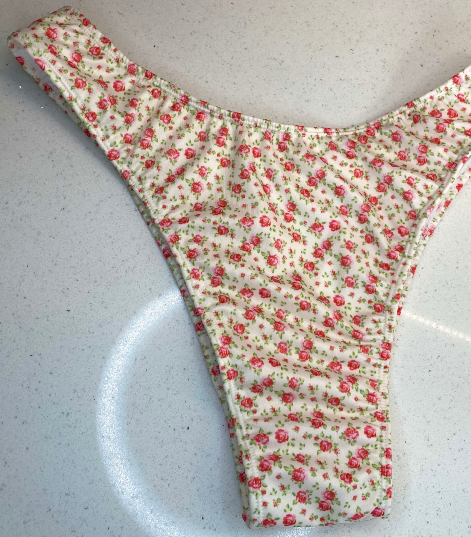 Wild Dreams Bikini Bottoms. This Bikini really is a summer dream! Soft floral fabric environmentally responsibly made from recycled yarn from waste material. The fit of the bottoms are similar to the Gracie Knickers because you obviously need them in bikini form! Tanga Cut of bottoms. They are not full coverage or too little. Buy the top or bottoms separately.