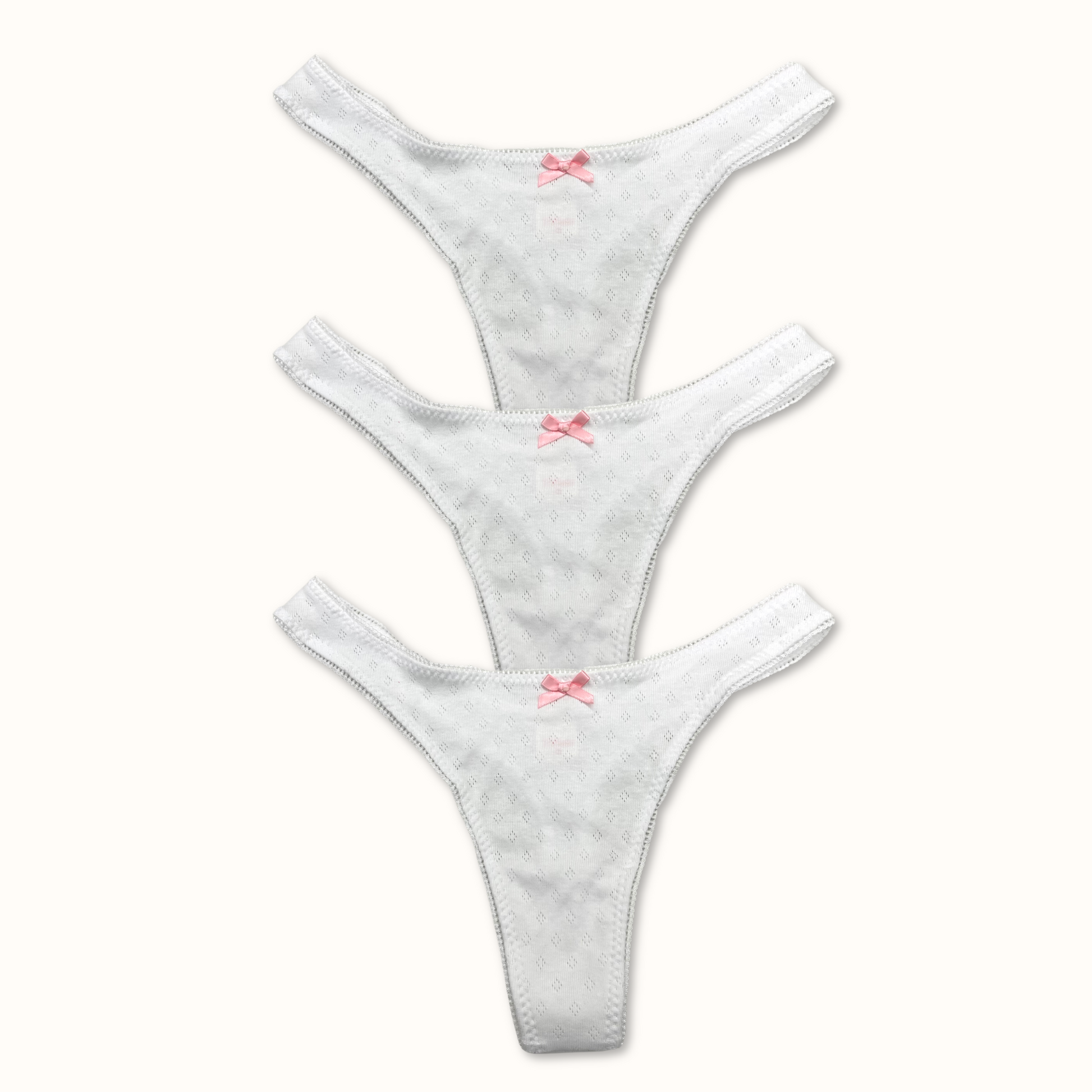 3 Pack of Daisylia Ivie Thongs. White, Black or Grey organic cotton Gracie standard cut thongs.